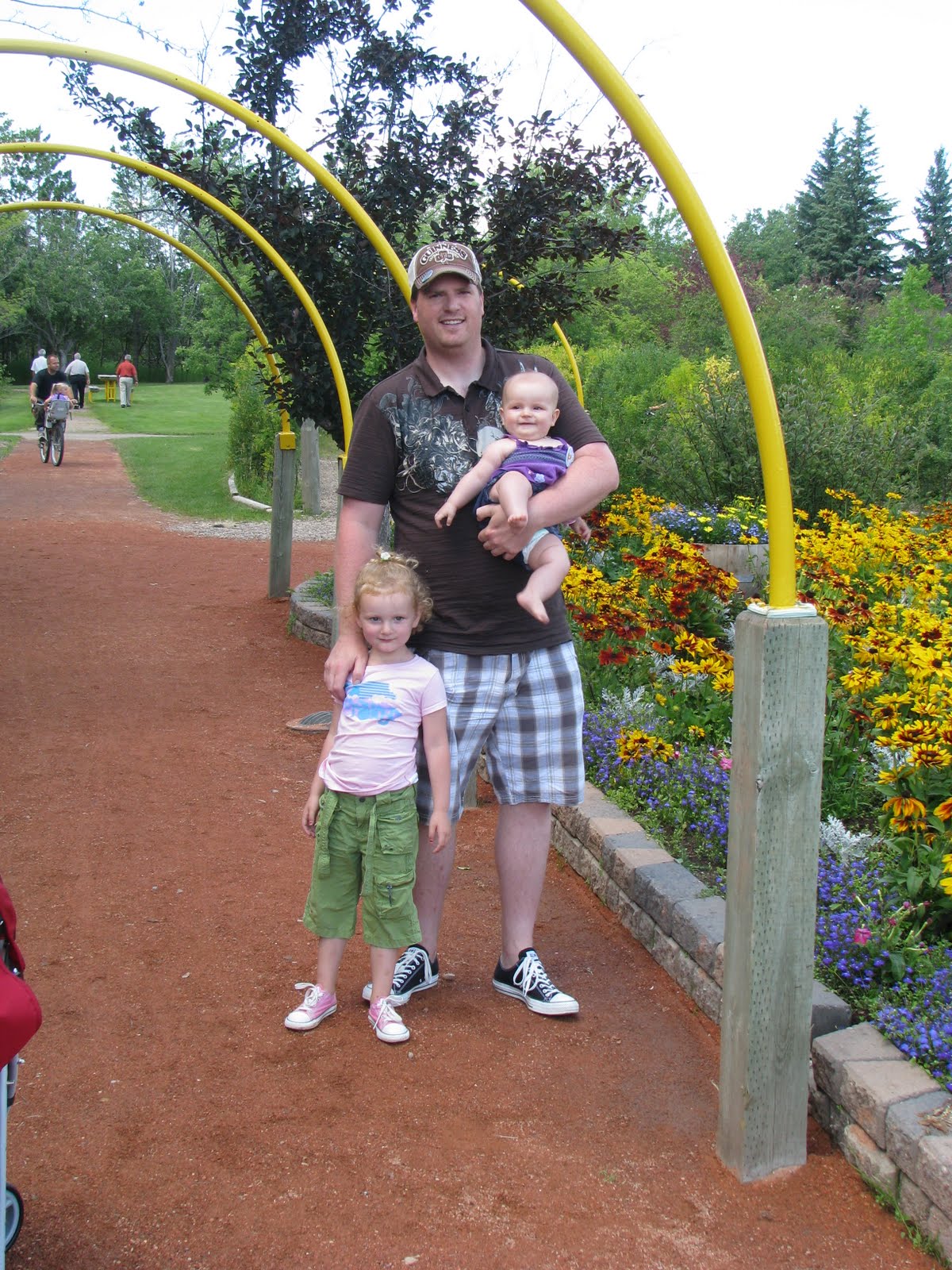 gorgeous Bud Miller Park!!! What a find. It was +31 that day so it was a tad too warm for Ella Bella to really enjoy it other than hanging out in the shade and watching her big Sister, but she did manage to let us stay there for almost 2 hours. We headed for the mall after that and the minute we were in the air conditioning she fell asleep for an hour or so and then woke up ravenous. :-) She ate a whole jar of food and was a happy camper for the rest of out shopping trip. Kailey went to Claire's for the first time and was in HEAVEN. She picked out wedge flip flops in a nice plaid...hahha. She loves travelling so much and was good as gold and loved the entire trip. Ella Bella is not so much a fan of being strapped in for so long. :-( She slept for half of the trip home, but then was pretty fussy for the last half. Thankfully she likes to have a sippy cup of water and those rice husk snacks. phew. She is sooooo loud when she is unhappy though. Kailey says to her, "tone it down yappy doodle". hahaha. Kailey had to have a potty break on the highway, which she thought was rather cool...go figure. All in all, very nice to get out of Cold Lake for the day, but made me realize how much work a trip to Edmonton would be...yikes. I am hoping she gets better at travelling when she is older. She is not a fan of the stroller, so she will be 16 and still in the Bjorn carrier I guess...hahaha. (I laugh, but it was very tiring at some points lugging her around).