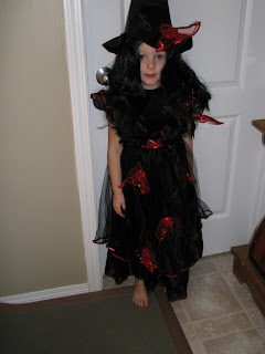 Grandma Diane took kailey shopping and she told her she could pick anything she wanted from the store and this is part of what she came up with...a gorgeous witch hat, red Gothic wig and a Gothic witch costume. No kidding, this is what she really wanted.